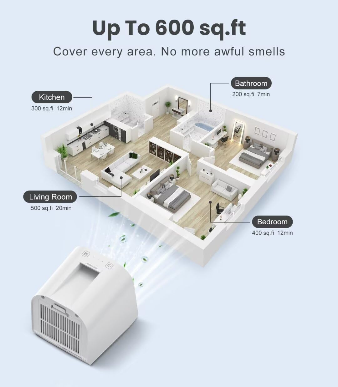 This portable air purifier is designed for use in bedrooms, living rooms, and other small spaces, making it ideal for use in homes with pets. The compact size and sleek design make it easy to place anywhere in your home without taking up too much space.