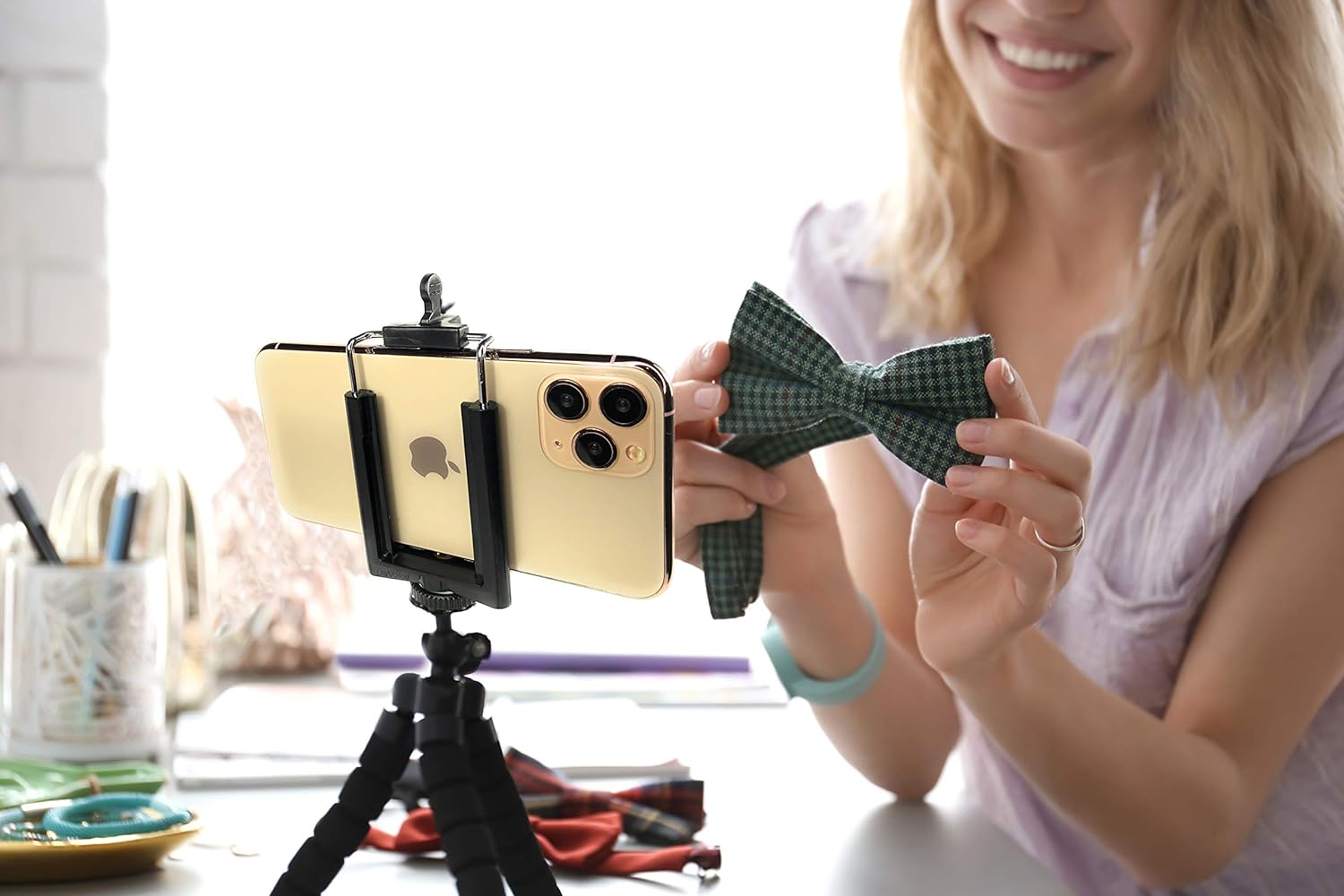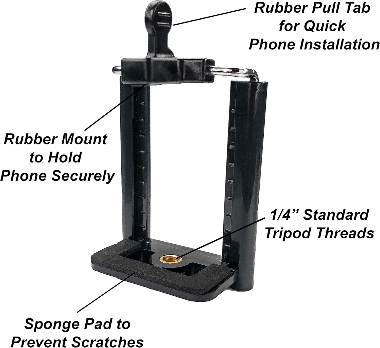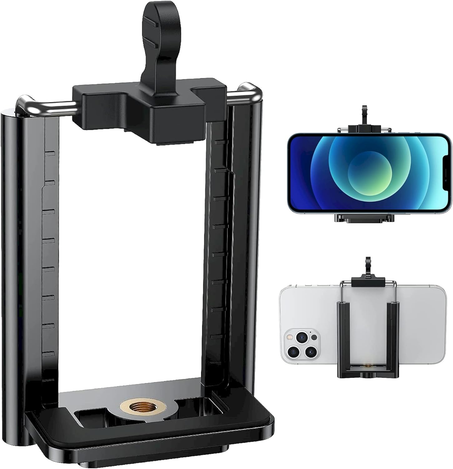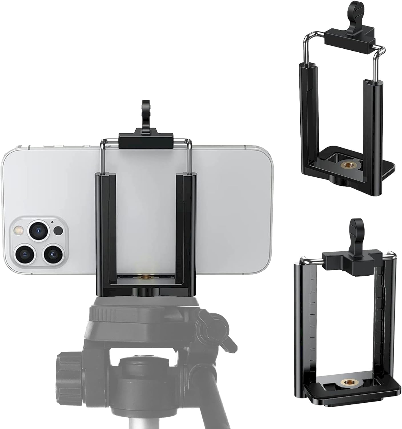 The Tripod Phone Mount 1/4″ Screw Adapter is a versatile and sturdy attachment for your smartphone. Compatible with iPhone, Samsung, and other cell phones, this adjustable holder easily clips onto any tripod or camera stand. The universal clamp securely holds your phone in place, allowing you to capture steady and professional-quality photos and videos. Whether you’re a beginner or a seasoned photographer, this black tripod phone mount is the perfect accessory to take your mobile photography to the next level.
